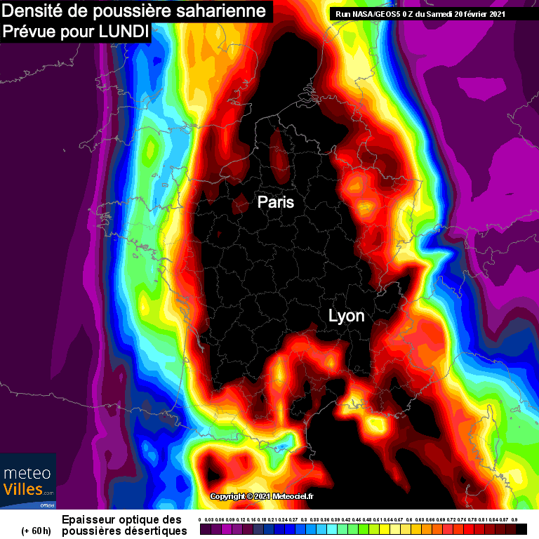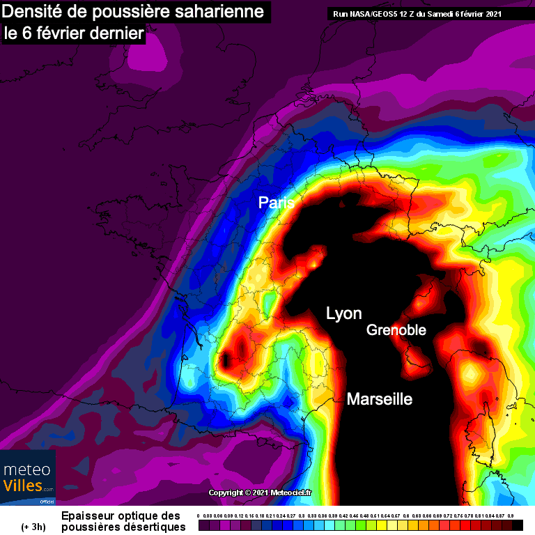 L'autre fait notable demeure les quantités attendues. Si nous avons encore en tête l'épisode remarquable du 6 février dernier, il faudra s'attendre à une concentration potentiellement supérieure et ceci sur une superficie nettement plus large qu'en début de mois. Une grande partie de la France pourrait donc observer un ciel laiteux, ocre, avec une occultation partielle des rayons solaire même en cas de ciel vierge de nuages.