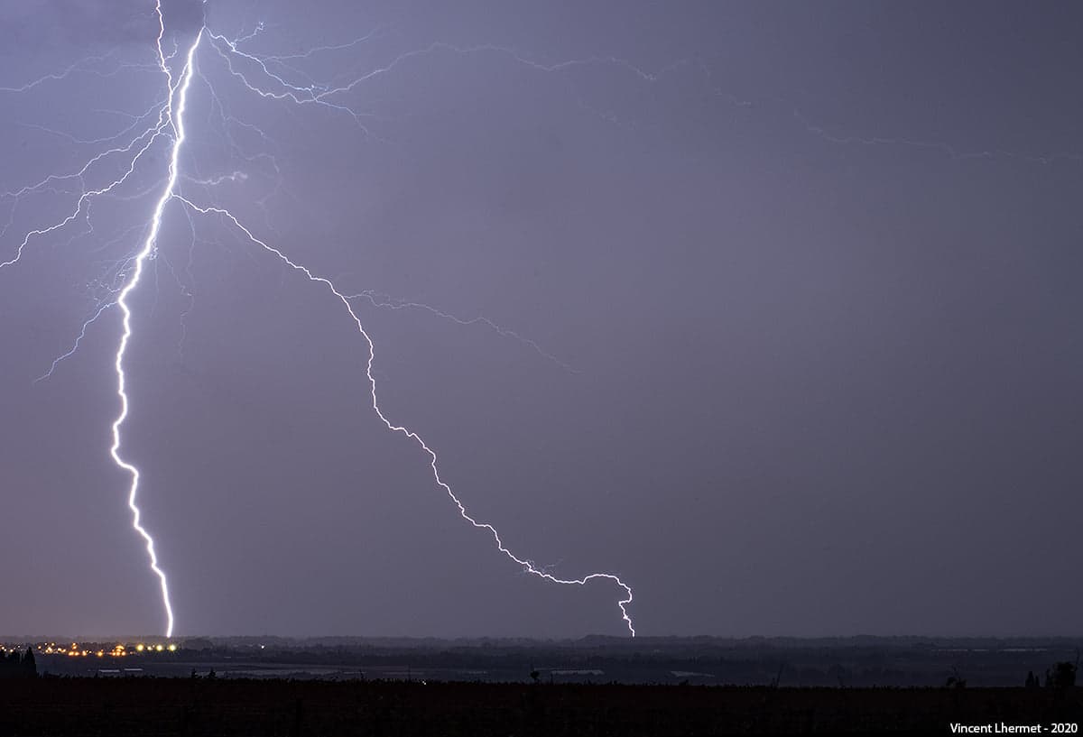 Impacts de foudre en Camargue en début de nuit de Samedi 7 à Dimanche 8 Novembre - Photographie : Vincent Lhermet