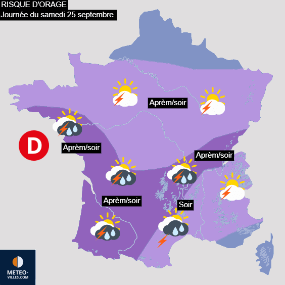 Carte du risque orageux pour la journée du samedi 25 septembre 2021 - Météo-Villes