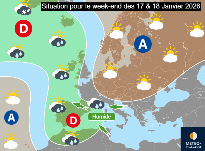 Situation météo en Europe pour le week-end des samedi 17 et dimanche 18 janvier 2026 - Météo Villes
