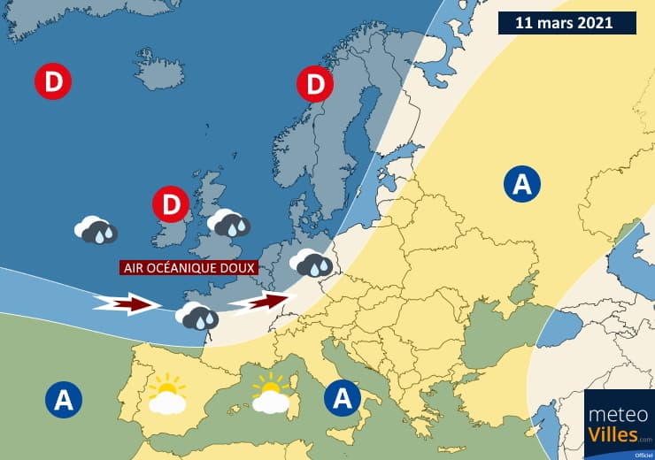 Schéma de la situation pour le jeudi 11 mars 2021 - Météo Villes