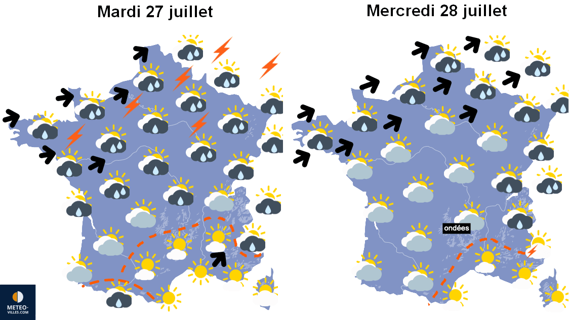Temps sensible envisagé pour mardi 27 et mercredi 28 juillet 2021 sur la France – Météo-Villes