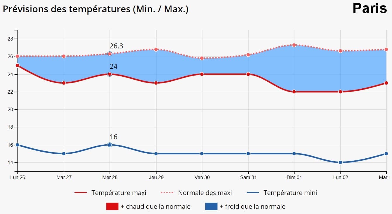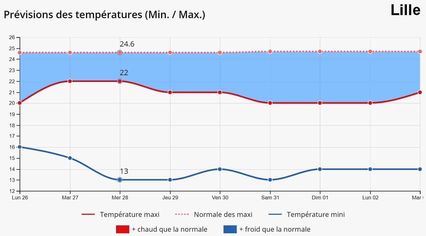 Evolution des températures dans les 8 prochains jours à Paris et Lille - Météo-Villes
