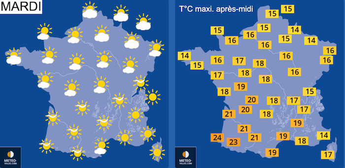 Mardi devrait illustrer parfaitement cette tendance : le ciel sera enfin dégagé sur les trois quarts du pays et les températures dépasseront fréquemment les 15 °C l’après-midi. Avec un vent de sud soufflant au pied des Pyrénées, le seuil de chaleur pourrait même être approché, voire atteint localement, avec jusqu’à 25 °C sur le Pays basque.