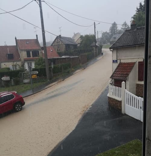 Ruissellements sous l'orage à Puiseux-le-Hauberger (Oise) le mercredi 2 juin 2021 - via Météo Nord Parisien