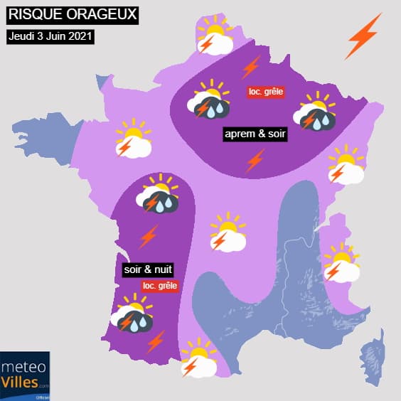 Prévision du risque orageux pour le jeudi 3 juin 2021 - Météo Villes