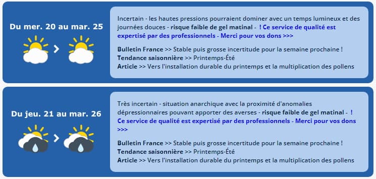 Avec des tendances aussi évolutives, nous ne pouvons que vous conseiller de consulter régulièrement la réactualisation de nos bulletins de prévisions >>>