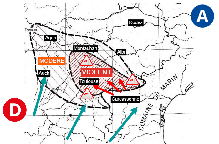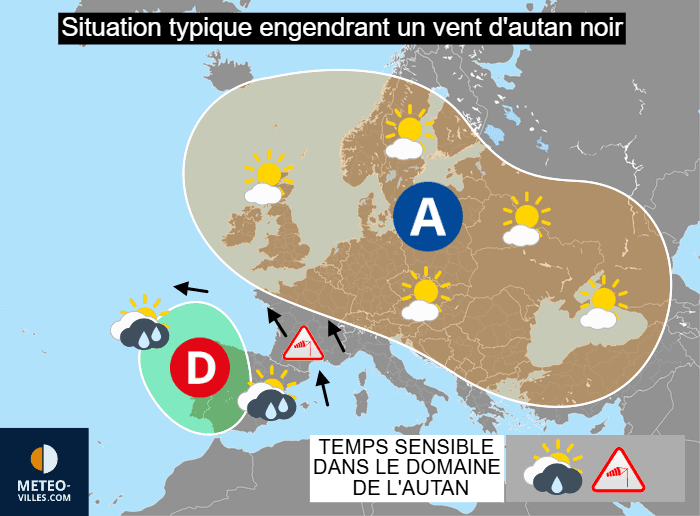 Schéma d'une situation typique engendrant un vent d'autan noir - Météo Villes