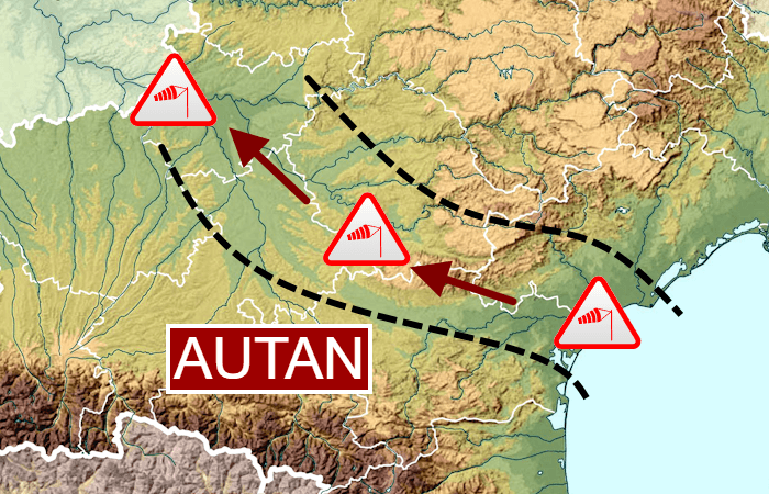 Le vent d'autan se forme généralement lorsque l'anticyclone est présent de la Mer du Nord à l'Europe Centrale et que le flux s'oriente au secteur sud-est en France. La présence d'une dépression vers le golfe de Gascogne ou la péninsule ibérique vient renforcer l'autan, qui peut alors souffler en tempête. C'est exactement ce qui se produit cette semaine avec des basses pressions au nord-ouest du Portugal et un anticyclone installé de la Scandinavie aux Balkans.
