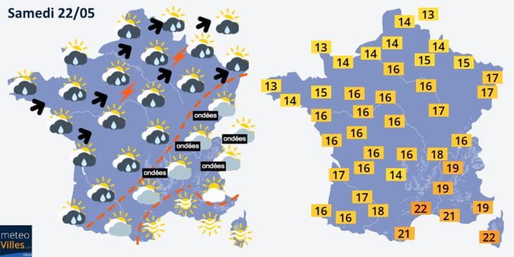 Prévisions du temps et des températures pour le samedi 22 mai 2021 - Météo Villes