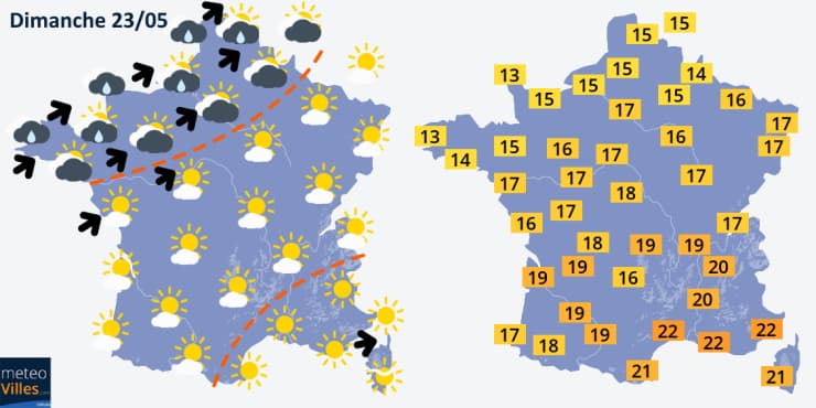 Prévisions du temps et des températures pour le dimanche 23 mai 2021 - Météo Villes