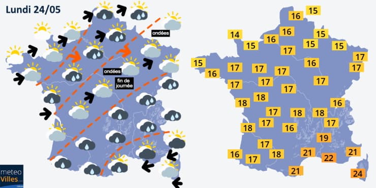Prévisions du temps et des températures pour le lundi 24 mai 2021 - Météo Villes