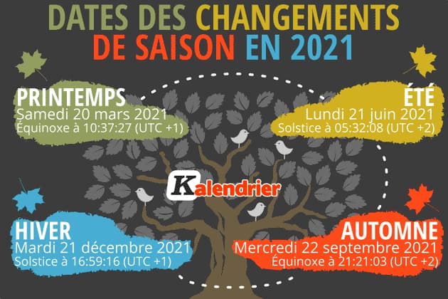 Date de début des saisons calendaires durant l'année 2021 - via Kalendrier