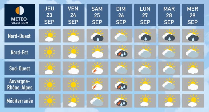 Prévisions du temps sur 5 zones françaises du jeudi 23 au mercredi 29 septembre 2021 - Météo Villes