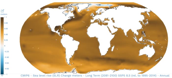 Projection de l'élévation du niveau de la mer d'ici 2010 selon le scénario pessimiste - via IPCC