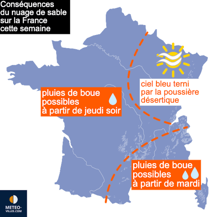 Carte des conséquences du nuage de sable sur la France cette semaine - meteo-villes.com