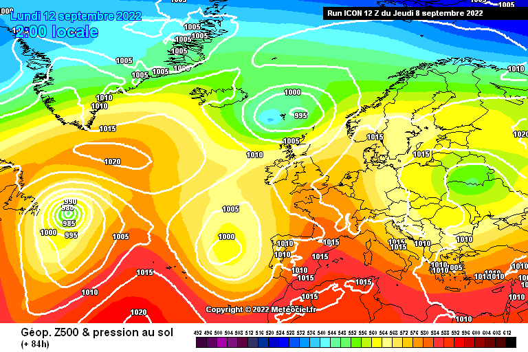 Situation à échelle continentale pour le lundi 12 septembre 2022 - via ECMWF