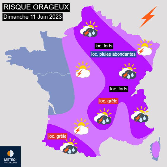 Risque orageux en France pour le dimanche 11 juin 2023 - Météo Villes