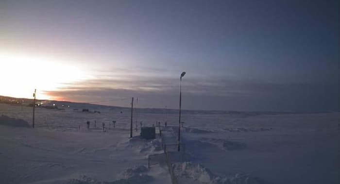 Quelques lueurs du jour à Paulatuk (Canada) ce 20 décembre 2021 - via windy.com