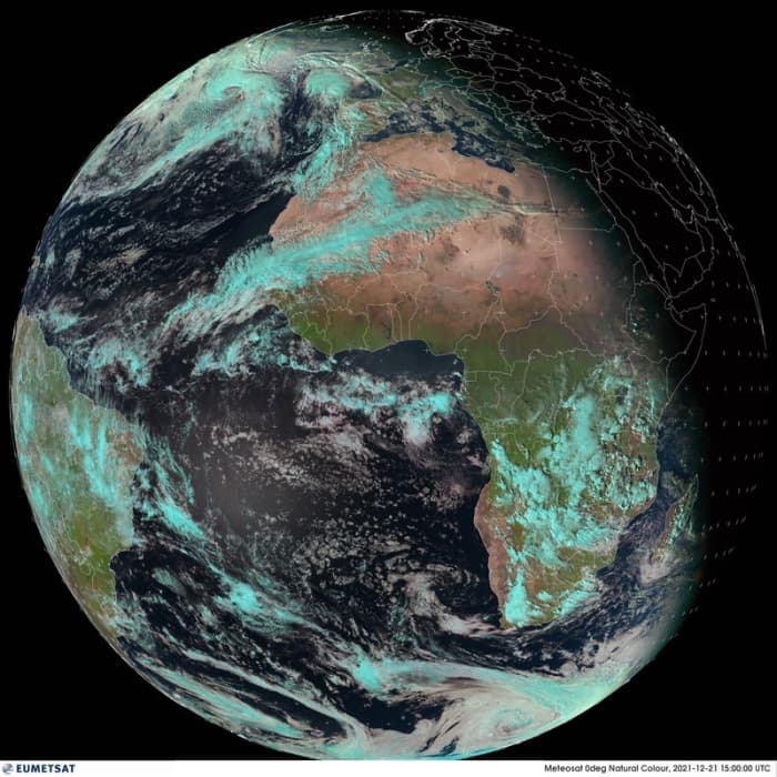 Vue satellite de la lumière solaire reçue sur Terre ce mardi 21 décembre 2021 - via EUMETSAT