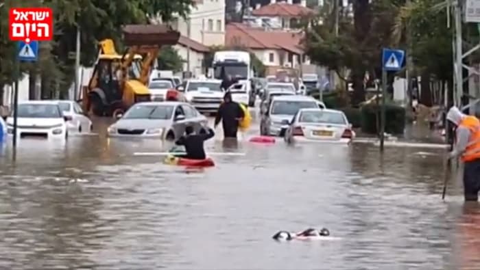 Ce week-end, le mauvais temps s'est abattu sur Israël au travers de fortes pluies. On a relevé 49 mm à Jerusalem et 48 mm à Tel Aviv. Des inondations ont été observées dans plusieurs localités, notamment dans la ville de Lod où un habitant avait même sorti son kayak pour circuler dans les rues inondées !