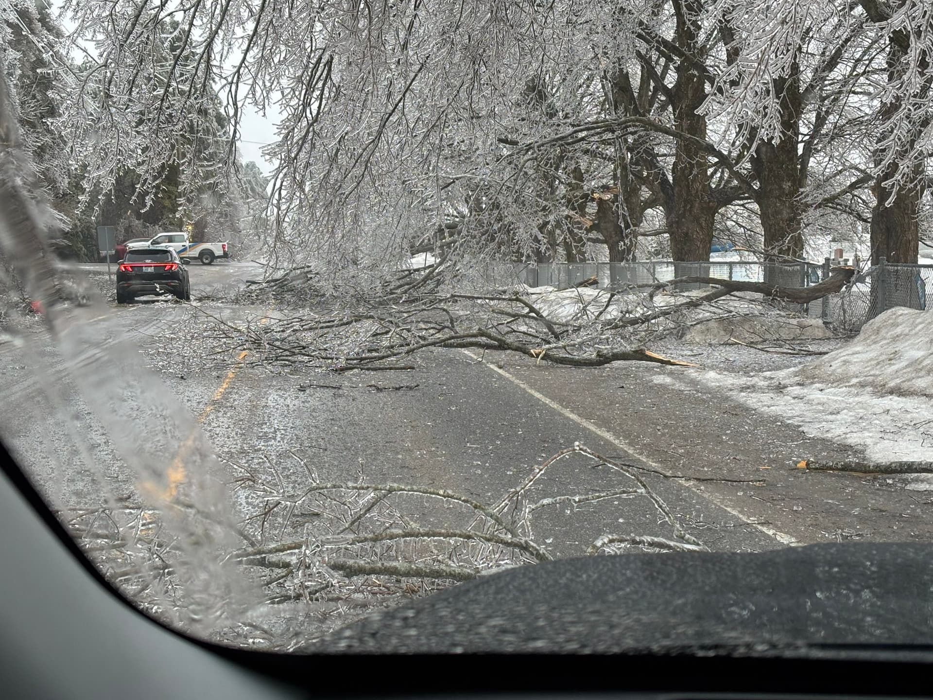 Nombreux dégâts suite aux pluies verglaçantes à Orillia en Ontario ce 30 mars 2025 – Via Twitter @tbryce