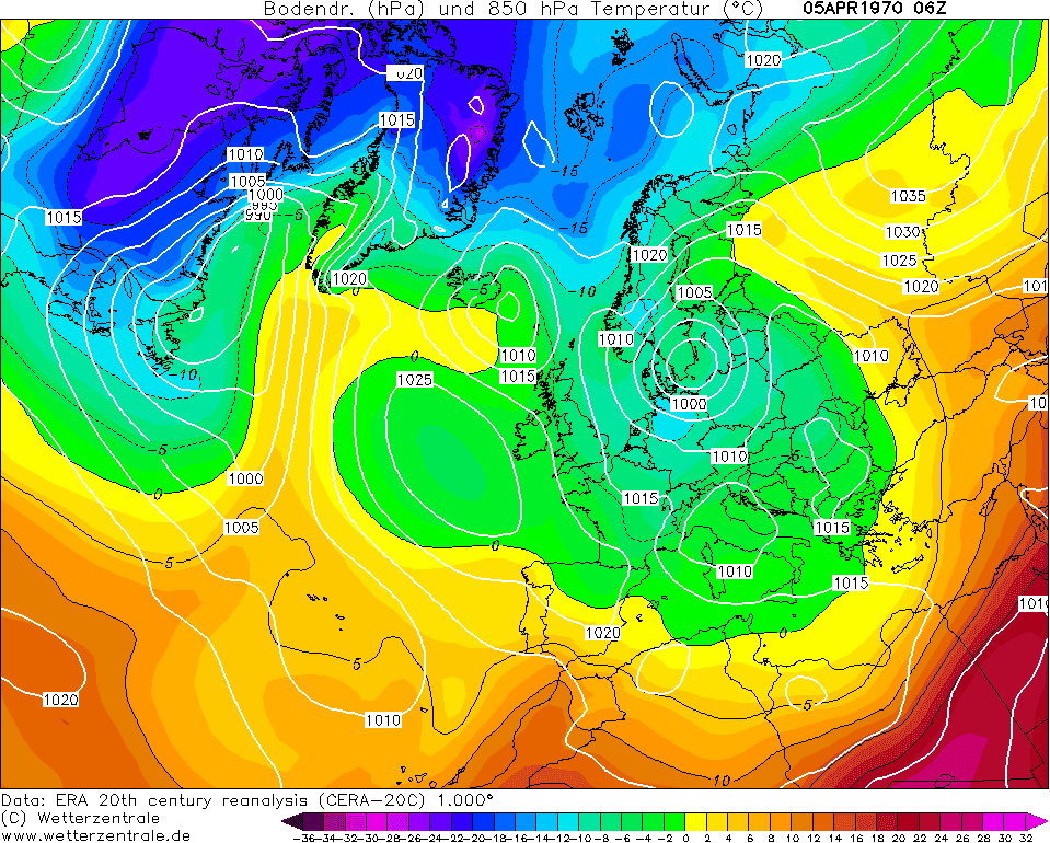 Ré-analyse de la situation atmosphérique du 5 avril 1970 sur l’Ouest du l’Europe – Via Wetterzentrale