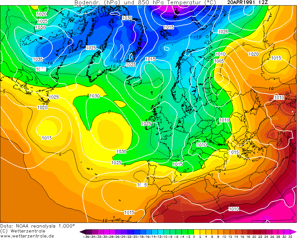 Ré-analyse de la situation atmosphérique du 20 avril 1991 sur l’Ouest du l’Europe – Via Wetterzentrale