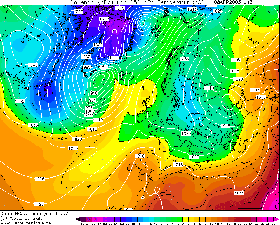 Ré-analyse de la situation atmosphérique du 8 avril 2003 sur l’Ouest du l’Europe – Via Wetterzentrale