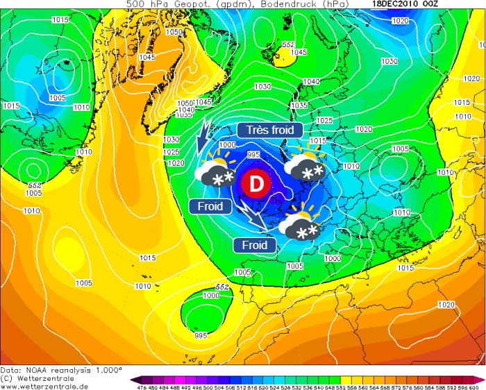 Après la mi-décembre 2010, une nouvelle dépression polaire plonge vers les Îles Britanniques et le nord de la France. C'est le début d'une dizaine de jours particulièrement hivernaux en France, notamment sur les régions du nord, du centre et de l'est où les épisodes neigeux vont se succéder jusqu'à Noël !