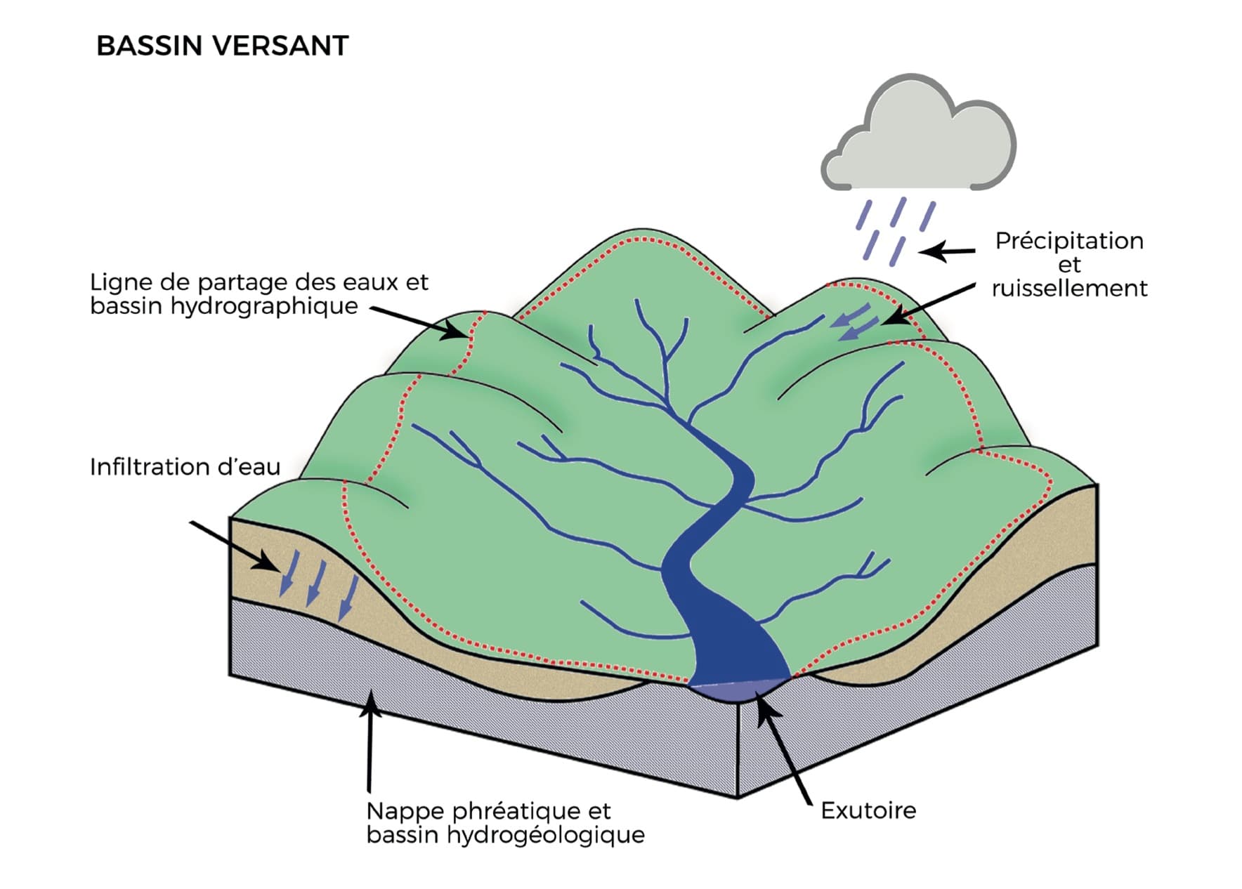 Schéma d'explication d'un bassin versant – METEO-EXTREME