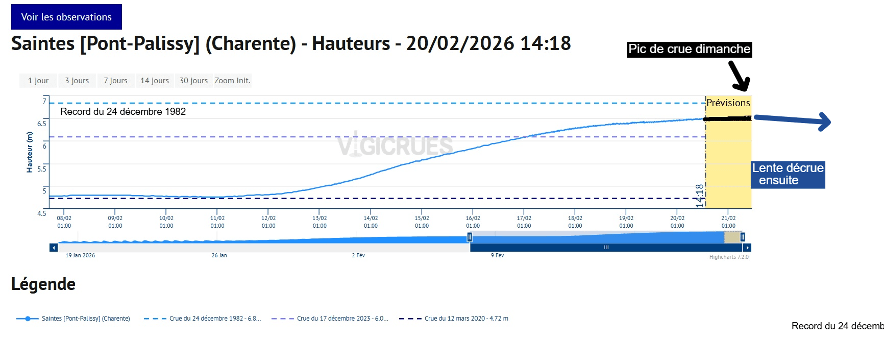 Évolution du niveau de la Charente à Saintes du 8 au 22 février 2026 – Vigicrues