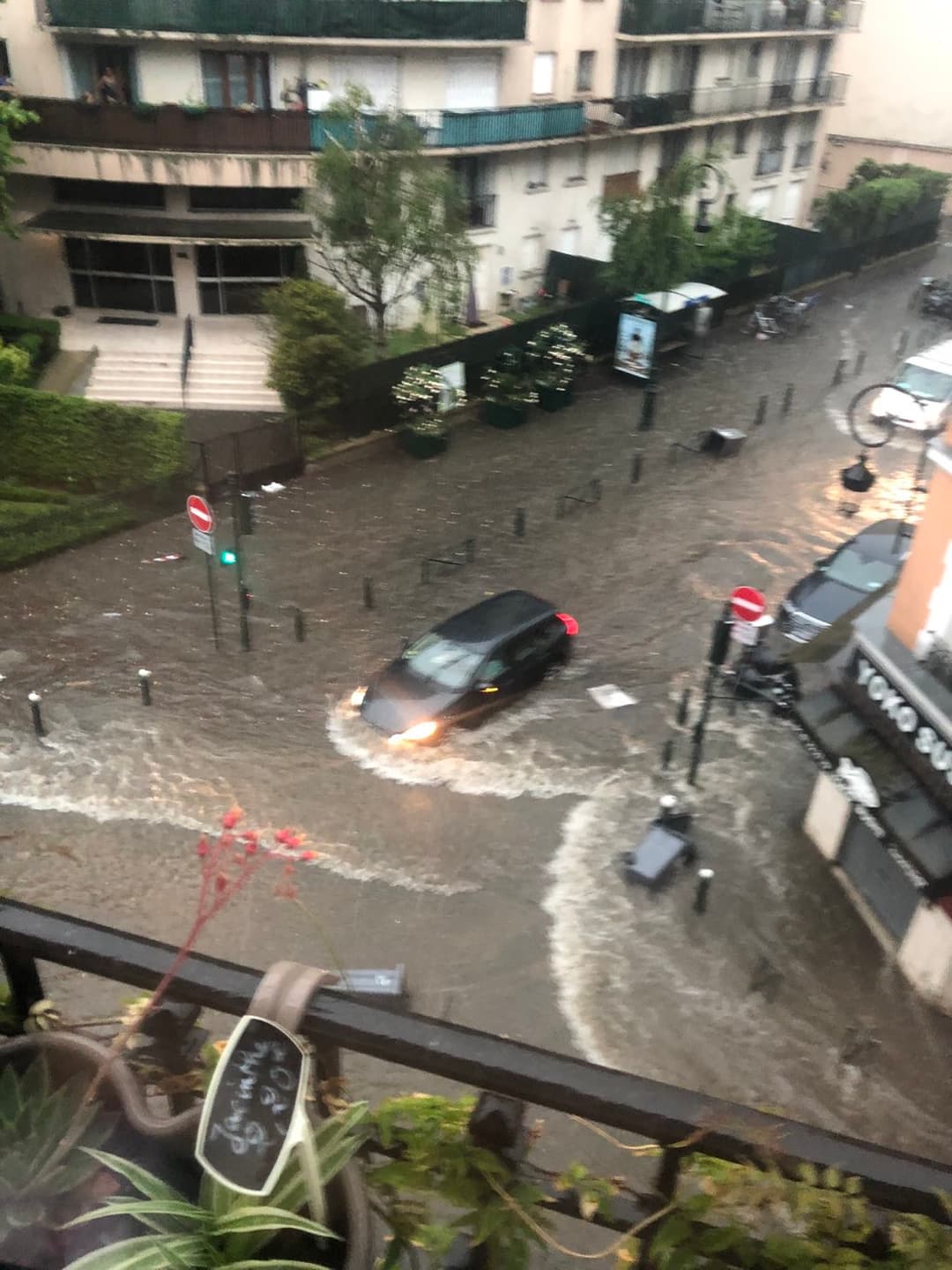 La nuit est tombée en quelques minutes et un déluge de pluie et de grêle s’est abattu sur la capitale, accompagné de rafales à plus de 110km/h (jusqu’à 112km/h au Bourget). En conséquence, de nombreux ruissellements urbains ont été observés, inondant certains quartiers de la ville, tout comme la station d’Alma Marceau, noyée sous plus de 30cm d’eau pendant plusieurs dizaines de minutes