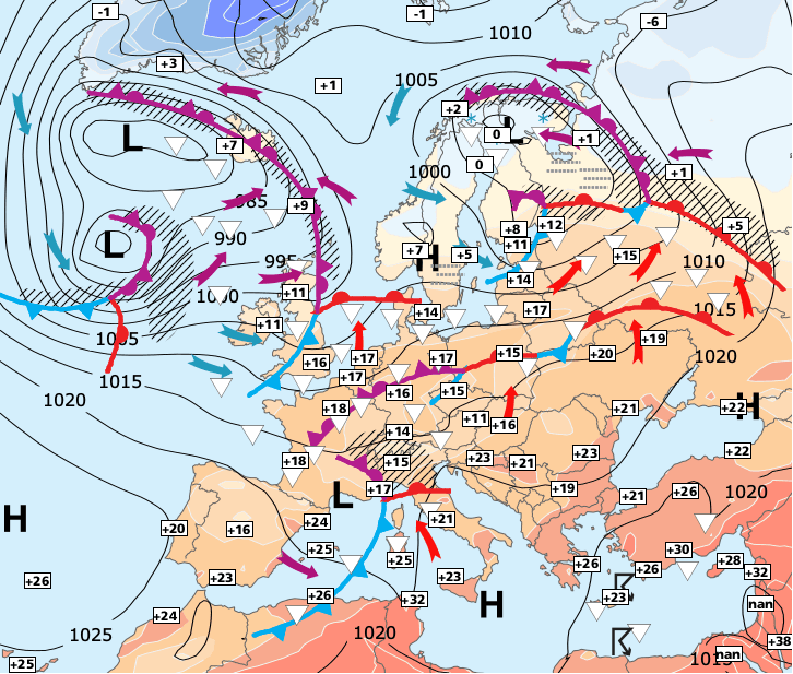 + La zone d’instabilité liée aux remontées d’air chaud en provenance d’Afrique du Nord a mis du temps à se déplacer vers l'Est... Et elle aura quitté le pays dans la nuit de vendredi à samedi.