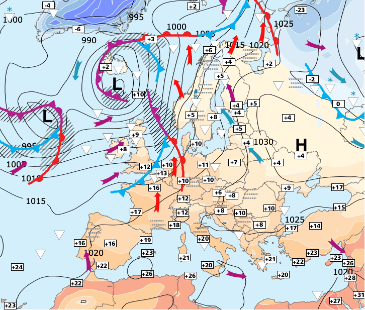 + Le courant de sud-ouest doux qui nous concerne depuis plusieurs jours (et même plusieurs semaines) persistera samedi.